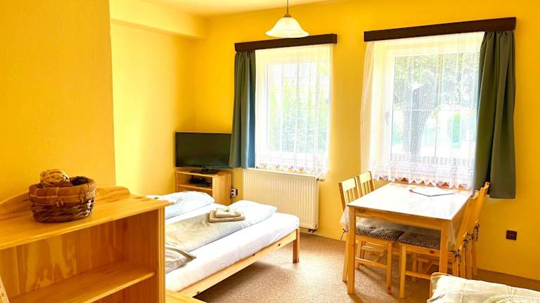 Die Privatunterkunft im Jičín Penzion P&P bietet komfortable 2-3-Bett-Zimmer mit einer eigenen Küche und einem Badezimmer. Jedes Zimmer ist mit einem Flachbild-TV ausgestattet, damit Sie Ihre Lieblingssendungen genießen können. Die Küche verfügt über einen Kühlschrank, eine Mikrowelle und ein Kochfeld, so dass Sie Ihre eigenen Mahlzeiten zubereiten können. Das Badezimmer ist mit einer Dusche, kostenfreien Pflegeprodukten und einem Haartrockner ausgestattet.