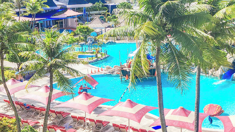 Alle Zimmer sind mit Bademänteln, Hausschuhen, Klimaanlage, Kabel- und Pay-per-View-TV, einem Safe und einem Kühlschrank ausgestattet. Jedes Zimmer verfügt über einen eigenen Balkon, der entweder einen Blick auf die Gärten oder den Wasserpark bietet.