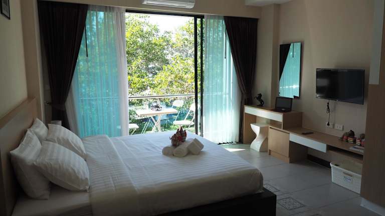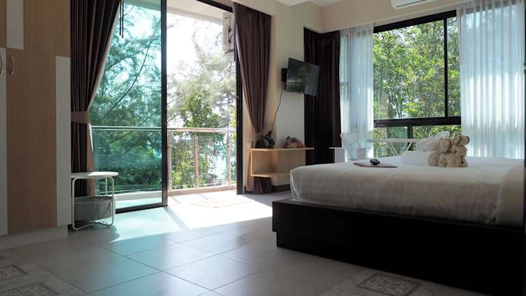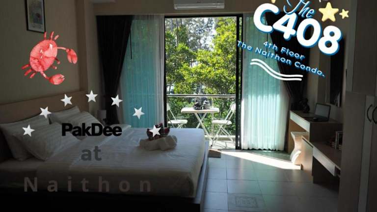 Pak Dee At Naithon bietet Übernachtungsmöglichkeiten mit kostenlosem WLAN, Klimaanlage und Zugang zu einem Garten mit Terrasse. Die Unterkunft verfügt über einen Balkon mit Meerblick und einen Sitzbereich.