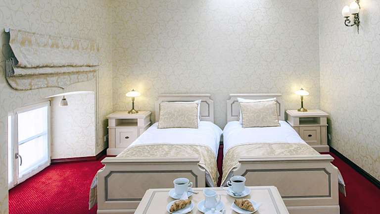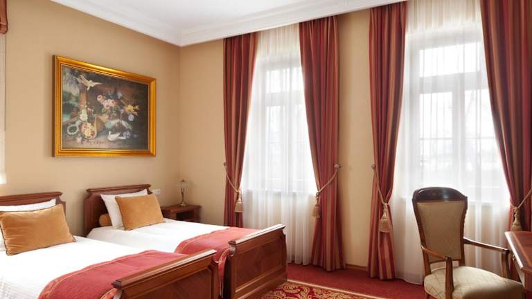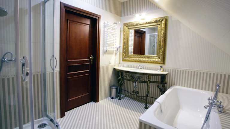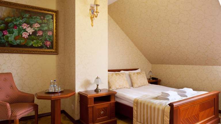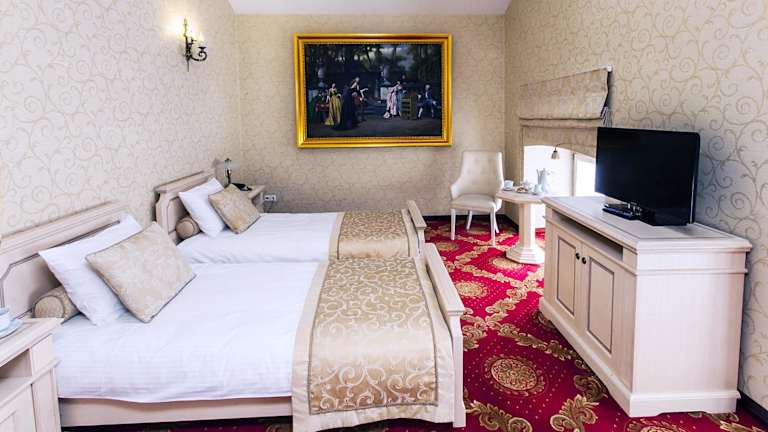 Die Zimmer im Pałac Żelechów Spa & Wellness sind elegant und im Palaststil eingerichtet. Jedes Zimmer verfügt über modernen Komfort wie Klimaanlage, Flachbild-TV und ein eigenes Badezimmer mit Badewanne oder Dusche. Genießen Sie den Luxus und die Gemütlichkeit dieser Unterkunft.