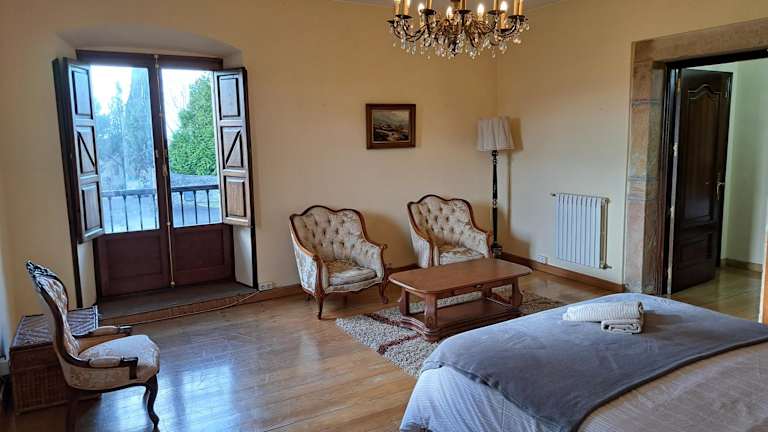 Das PALACIO MARQUES VEGA DE ANZO ist eine beeindruckende Villa mit Bergblick, die Ihnen eine komfortable Unterkunft mit Balkon und Kaffeemaschine bietet. Die Villa verfügt über einen schönen Garten, Grillmöglichkeiten und kostenfreies WLAN. Sie bietet auch kostenfreie Privatparkplätze für Ihre Bequemlichkeit. Genießen Sie den Luxus von 5 Schlafzimmern, einem geräumigen Wohnzimmer, einem Flachbild-Kabel-TV und einer gut ausgestatteten Küche. Die Villa ist mit 3 Badezimmern ausgestattet, die mit einem Bidet und einer Dusche ausgestattet sind. Handtücher und Bettwäsche werden gestellt, um Ihnen einen angenehmen Aufenthalt zu ermöglichen. Entspannen Sie in der Sauna und erkunden Sie die nahe gelegenen Sehenswürdigkeiten wie die Plaza de la Constitución und die Kirche San Julián de los Prados. Der Flughafen Asturias ist nur 52 km entfernt, was Ihre Anreise zum und vom Hotel einfach macht.