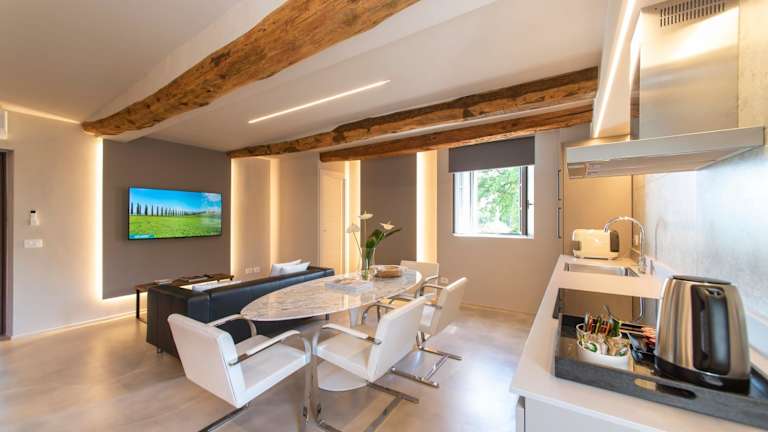 Die Unterkünfte in Palazzo del Papa Country Suites verfügen über einen Sitzbereich und einen Kabel-Flachbild-TV. Jede Suite ist mit einer voll ausgestatteten Küche ausgestattet, die einen Kühlschrank und eine Mikrowelle beinhaltet. Darüber hinaus gibt es ein eigenes Badezimmer, das mit einem Bidet und kostenlosen Pflegeprodukten sowie einer Dusche und einem Haartrockner eingerichtet ist.