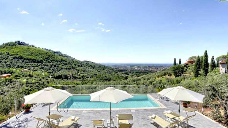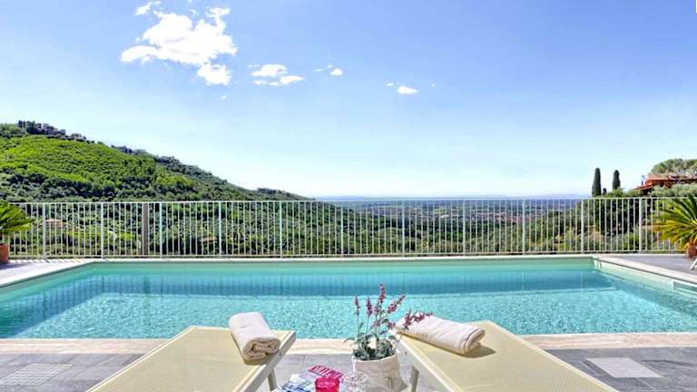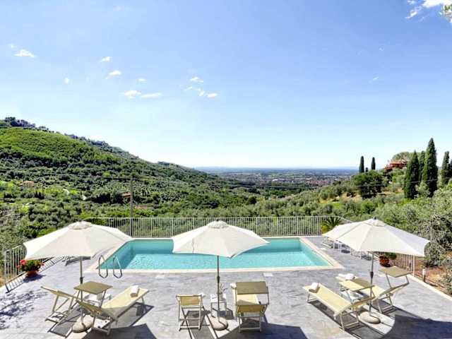 Die Villa besteht aus fünf Schlafzimmern und einem Wohnzimmer. Die voll ausgestattete Küche verfügt über einen Kühlschrank und eine Kaffeemaschine. Darüber hinaus gibt es vier Badezimmer mit Bidet und Dusche. Die Unterkunft stellt Handtücher und Bettwäsche zur Verfügung.