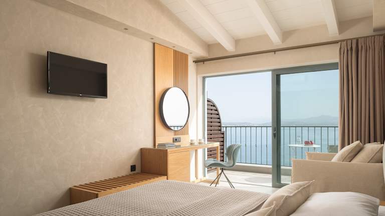 Die Zimmer im Palazzo Greco sind elegant gestaltet und verfügen über eine Massagedusche, Klimaanlage und Sat-TV. Die hellgrünen und hellblauen Farbtöne schaffen eine angenehme Atmosphäre und sorgen für Entspannung. Die meisten Zimmer bieten zudem einen herrlichen Meerblick. Das Hotel verfügt über einen Frühstücksraum, eine Café-Bar und einen Sat-TV-Raum. WLAN und kostenfreie Privatparkplätze stehen den Gästen zur Verfügung.
