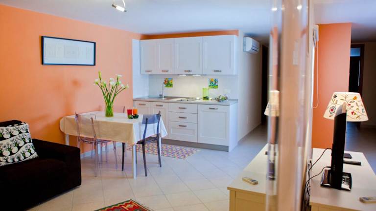Die Zimmer sind mit Klimaanlage, Heizung, einem Balkon und einer Kochnische ausgestattet. Jedes Zimmer verfügt über ein Doppelbett, separate Schlafzimmer sind optional buchbar. Zur Ausstattung gehören außerdem ein Kühlschrank, eine Tee-/Kaffeemaschine, ein Backofen, ein Schreibtisch, ein TV-Gerät und kostenloses WLAN. Die Badezimmer sind mit Dusche, Bidet und Haartrockner ausgestattet.