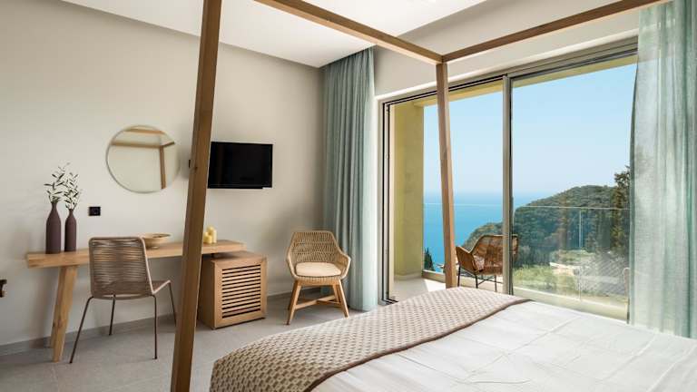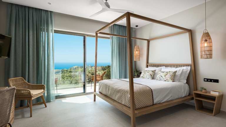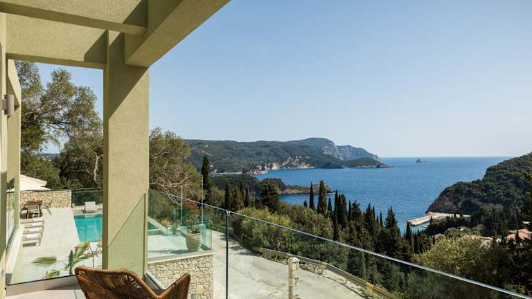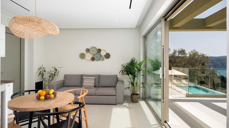 Die klimatisierten Villen der paleo villas sind komfortabel und modern eingerichtet. Sie verfügen über einen Balkon mit Meerblick, einen gemütlichen Sitzbereich und einen Flachbild-Sat-TV. Die voll ausgestattete Küche bietet alles, was man für die Zubereitung von Mahlzeiten benötigt, einschließlich eines Kühlschranks, eines Geschirrspülers, eines Backofens, einer Mikrowelle, eines Kochfelds, einer Kaffeemaschine und eines Wasserkochers. Das private Badezimmer ist mit einer Dusche und kostenlosen Pflegeprodukten ausgestattet.