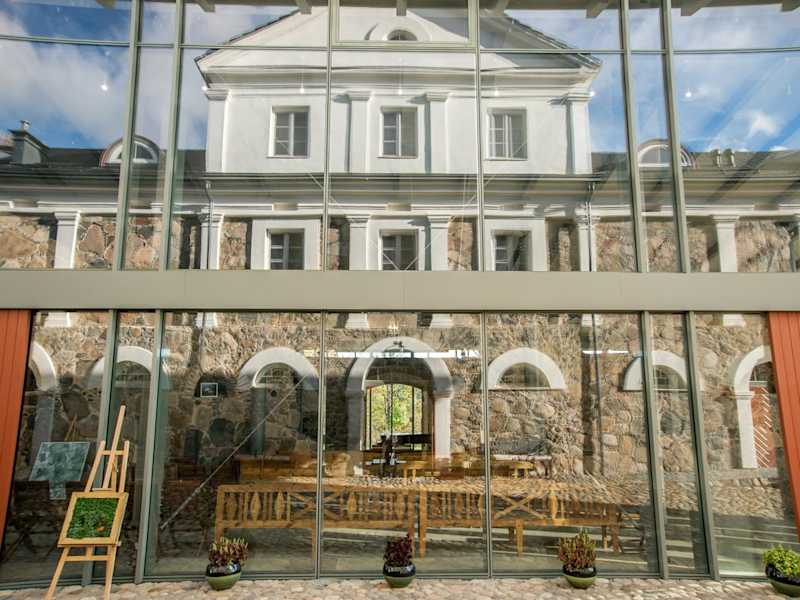 Das Paliesiaus Dvaras liegt in dem charmanten Dorf Mielagėnai, umgeben von einer malerischen Naturlandschaft. Hier finden Sie Ruhe und Entspannung abseits des Trubels der Stadt. Die Umgebung bietet zahlreiche Möglichkeiten für Outdoor-Aktivitäten wie Wandern, Skifahren und Radfahren.