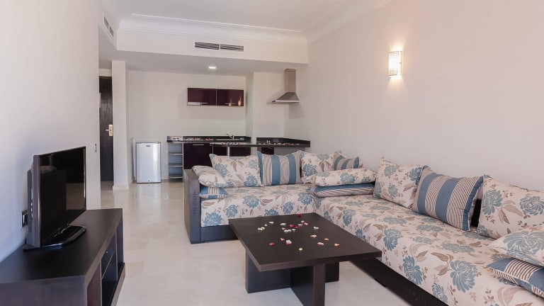 Der Palm Appart Club Marrakesh ist eine ideale Unterkunft für Urlauber, die sich selbst versorgen möchten. Das Hotel bietet einen Außenpool, ein Restaurant und kostenfreies WLAN in den öffentlichen Bereichen. Die Apartments sind mit Klimaanlage, Balkon und Terrasse ausgestattet und verfügen über ein eigenes Bad mit Badewanne und Dusche. Sat-TV sorgt für Unterhaltung. Die Gäste können den 24-Stunden-Service an der Rezeption nutzen und den Garten sowie den Kinderspielplatz und die Bar genießen. Kostenlose Parkplätze stehen zur Verfügung.