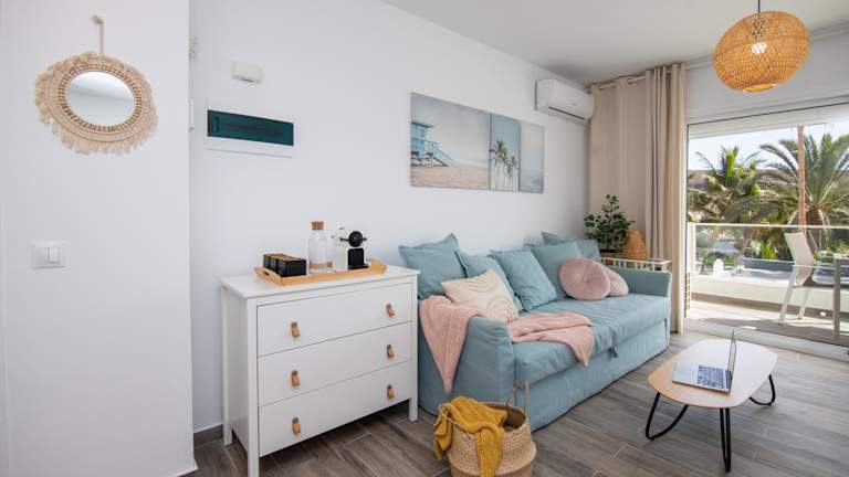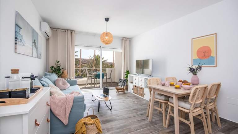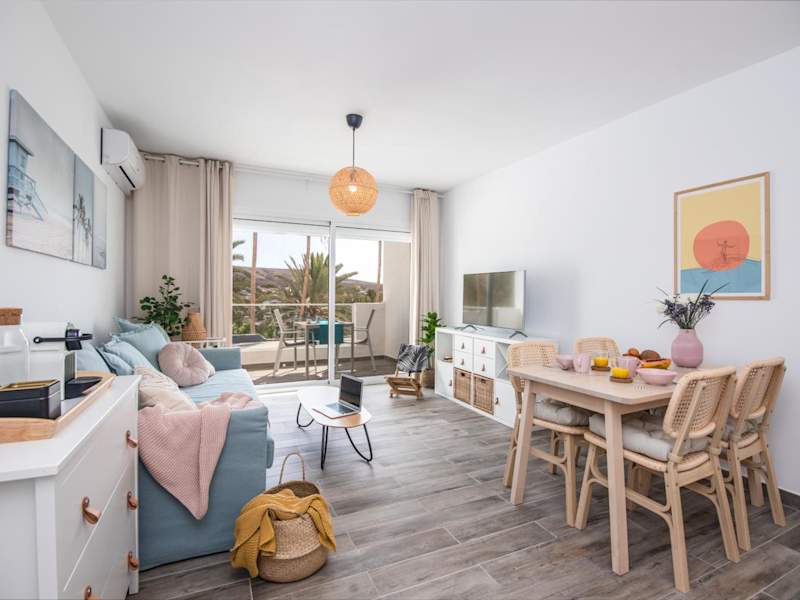Das Apartment im Palm Beach Fuerteventura verfügt über einen Balkon mit Stadtblick sowie einen Garten und eine Terrasse. Es bietet kostenfreies WLAN und einen Flachbild-TV. Die Küche ist gut ausgestattet mit einem Kühlschrank und einem Geschirrspüler. Das Schlafzimmer ist gemütlich eingerichtet und das Badezimmer verfügt über eine Dusche. Handtücher und Bettwäsche werden gestellt.