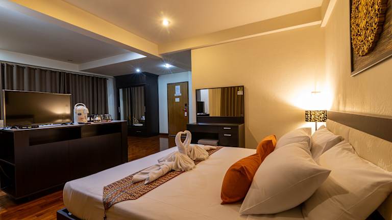 Die Zimmer im Palm Garden Hotel sind im traditionellen Thai-Stil eingerichtet und bieten eine gemütliche und einladende Atmosphäre. Jedes Zimmer ist klimatisiert und mit einem Flachbild-TV ausgestattet. Kostenloses WLAN steht Ihnen ebenfalls zur Verfügung, so dass Sie mit der Welt in Verbindung bleiben können. Ein geräumiger Sitzbereich sorgt für zusätzlichen Komfort und Entspannung während Ihres Aufenthalts.
