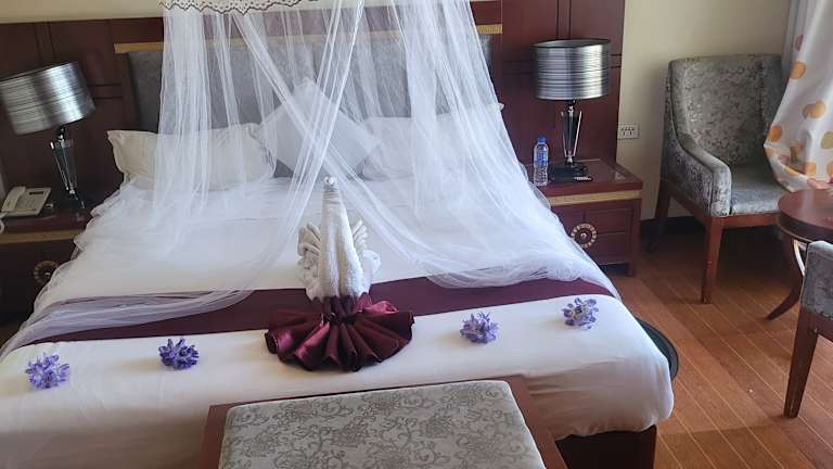 Die Zimmer im Palm Palace Hotel sind geräumig und komfortabel eingerichtet. Jedes Zimmer verfügt über einen eigenen Balkon mit Blick auf die Stadt oder den See. Zur Ausstattung gehören ein Sitzbereich mit Sofa, ein Flachbild-Sat-TV und ein eigenes Bad mit Dusche. Einige Zimmer bieten auch eine Whirlpool-Badewanne für zusätzlichen Komfort.