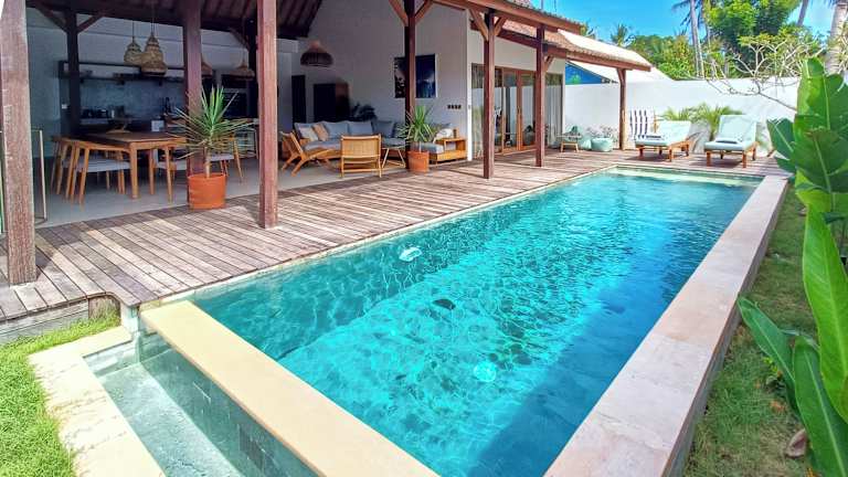 Palm Paradise Lembongan bietet Übernachtungsmöglichkeiten mit kostenlosem WLAN, Klimaanlage und einem Außenpool. Die Villa verfügt über einen eigenen Pool und eine Terrasse. In der Unterkunft sind keinerlei Feierlichkeiten wie Junggesellenabschiede gestattet. Ein kostenpflichtiger Flughafentransfer sowie ein Fahrradverleih stehen zur Verfügung.