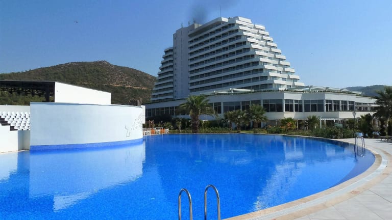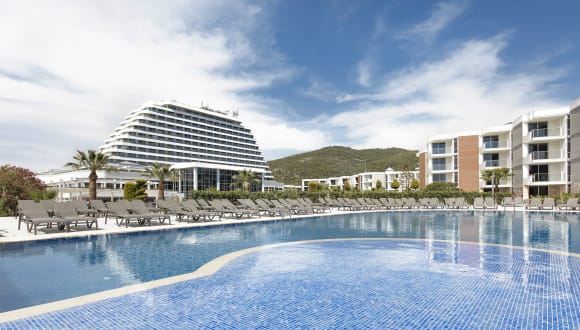 Das Resort befindet sich in Kusadasi, direkt am privat gelegenen Sandstrand Pampucak Beach. Es ist ca. 8 km vom Stadtzentrum entfernt, wo zahlreiche Einkaufs- und Unterhaltungsmöglichkeiten vorhanden sind. Die Transferzeit zum Flughafen Izmir beträgt ca. 60 Minuten, zum Flughafen Bodrum etwa 3 Stunden.