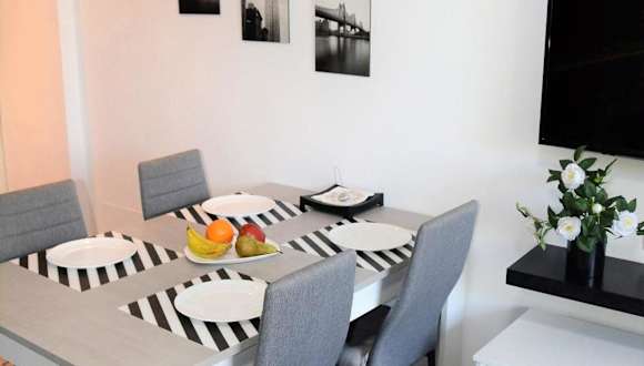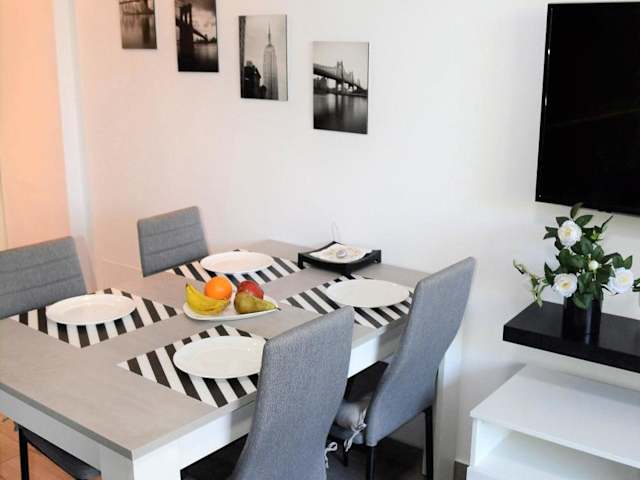Die Ferienwohnung verfügt über ein Schlafzimmer, ein Wohnzimmer, eine komplett ausgestattete Küchenzeile mit Mikrowelle und Kaffeemaschine sowie ein Badezimmer mit Dusche und Haartrockner. Zudem sind Klimaanlage, Handtücher und Bettwäsche vorhanden.