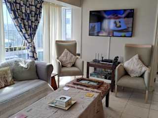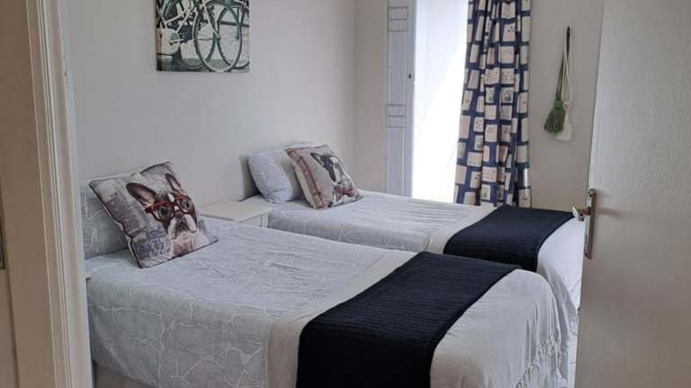 Die Ferienwohnung umfasst zwei Schlafzimmer, ein Wohnzimmer, eine voll ausgestattete Küche mit Kühlschrank und Wasserkocher sowie zwei Badezimmer mit Dusche und Haartrockner. Handtücher und Bettwäsche werden bereitgestellt.