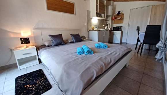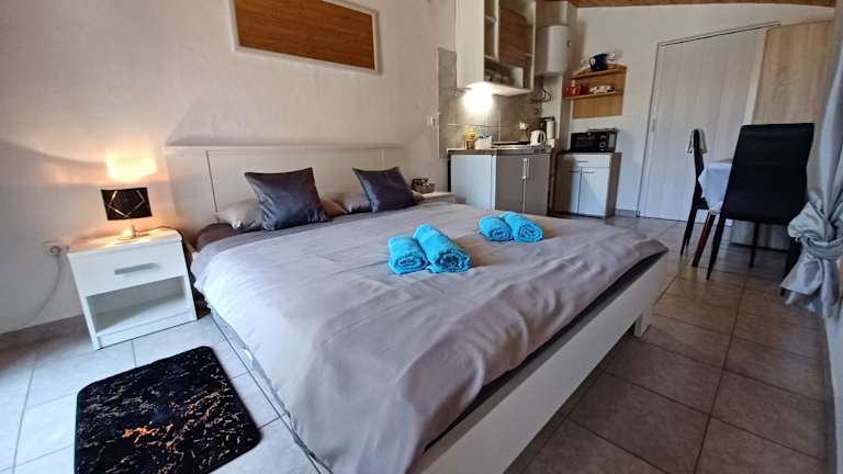 Die Ferienwohnung umfasst ein Schlafzimmer, ein Badezimmer, eine voll ausgestattete Küche sowie Annehmlichkeiten wie Bettwäsche, Handtücher und einen Flachbild-TV.
