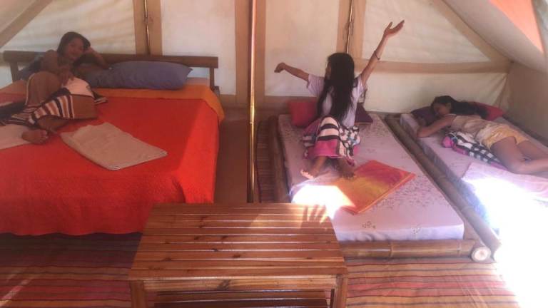 Das Pandora Glamping bietet ein einzigartiges Erlebnis in einem komfortablen Zelt. Genießen Sie den Blick auf den Garten und fühlen Sie sich eins mit der Natur. Die Ausstattung des Zeltes ist gemütlich und bietet alles, was Sie für einen angenehmen Aufenthalt benötigen.