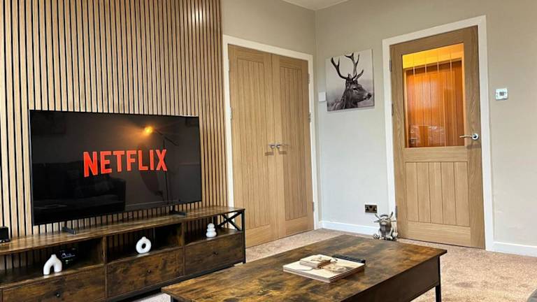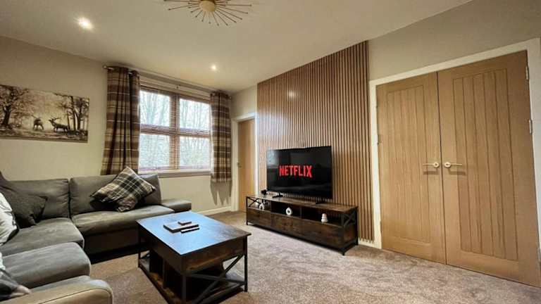Die Unterkunft verfügt über zwei Schlafzimmer, ein Wohnzimmer und eine voll ausgestattete Küche. Es handelt sich um eine moderne und einzigartige Ferienwohnung, die über Annehmlichkeiten wie kostenloses WLAN und einen Flachbild-TV verfügt.
