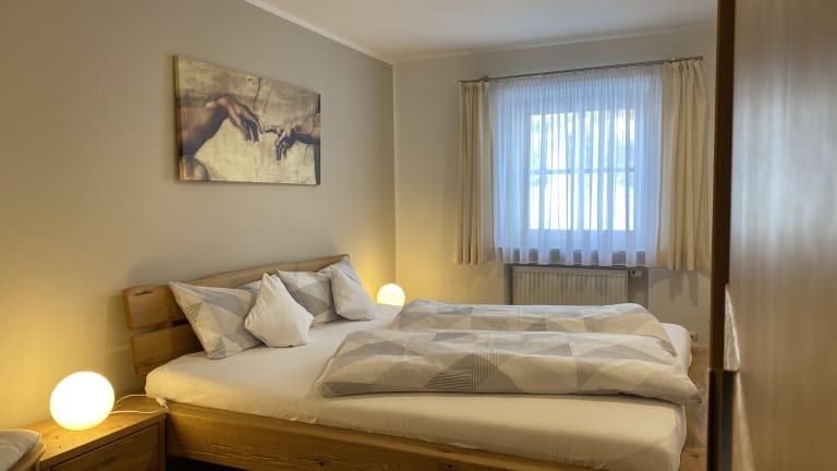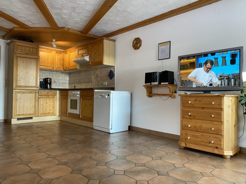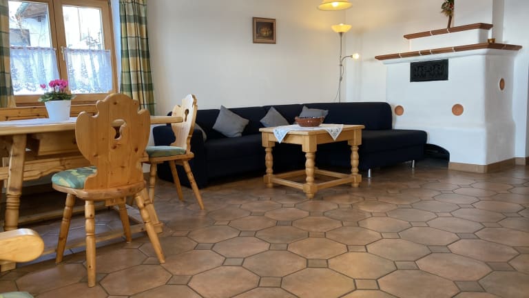 Unsere 4-Sterne Ferienwohnungen haben eine große und geräumige Wohnküche, Schlafzimmer und Bad. Jede Wohnung hat einen herrlichen Panaramablick zu den Ammergauer und Allgäuer Alpen.
