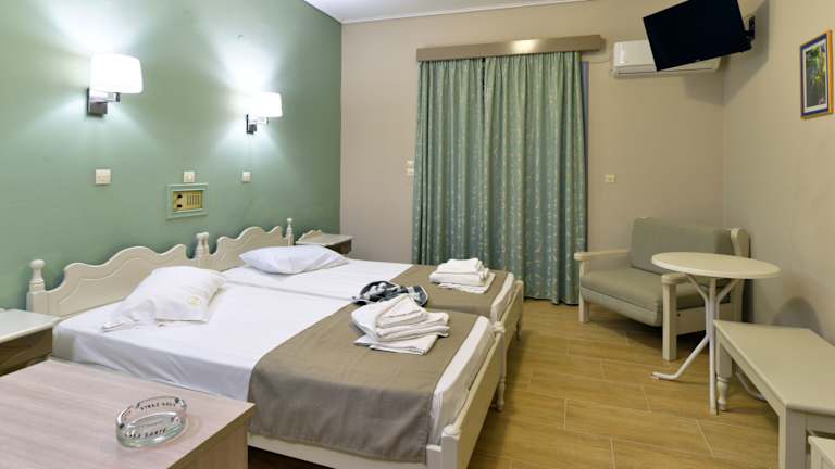 Die 78 klimatisierten Zimmer des Panorama Hotels sind gemütlich eingerichtet und verfügen über möblierte Balkone oder Terrassen. Kostenloses WLAN und Satellitenfernsehen stehen zur Verfügung. Die Badezimmer sind mit Duschen und Haartrocknern ausgestattet.