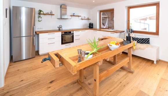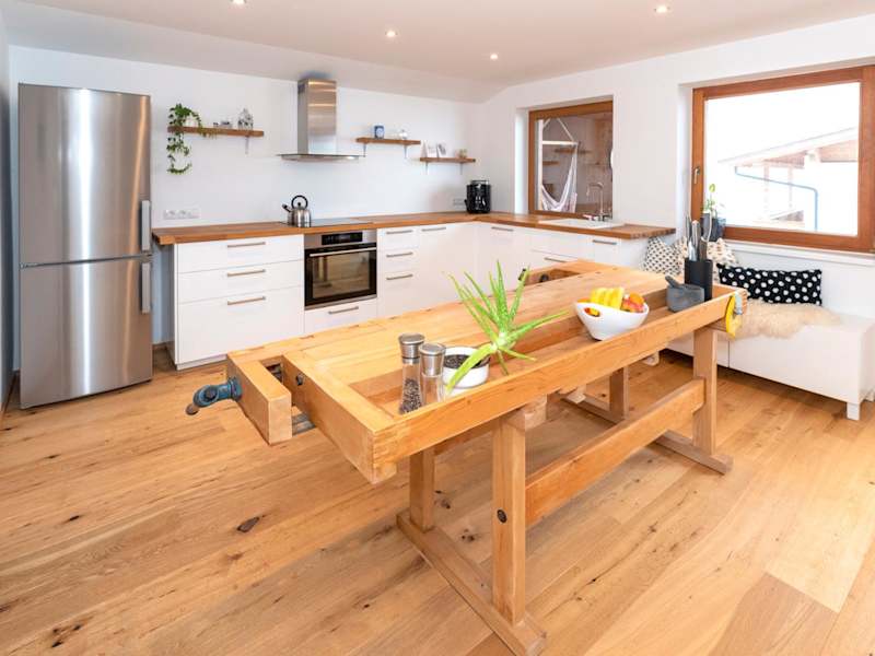 Die Ferienwohnung ist mit einer gut ausgestatteten Küche ausgestattet, die einen Kühlschrank und Geschirrspüler umfasst. Für die Verpflegung stehen keine weiteren Informationen zur Verfügung.