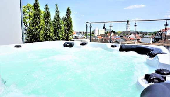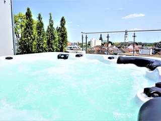 Das Panorama Penthouse Apartment bietet eine moderne und komfortable Unterkunft für bis zu 6 Personen. Die Rezeption ist rund um die Uhr besetzt und die Unterkunft bietet Annehmlichkeiten wie kostenfreies WLAN und einen Privatparkplatz. Ein Whirlpool und ein Kinderspielplatz sind ebenfalls Teil des Angebots.