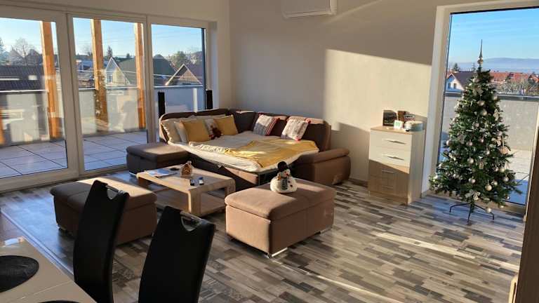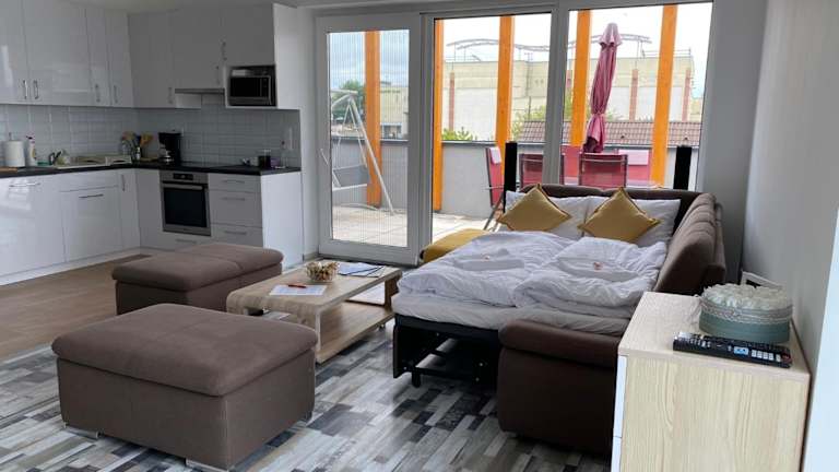 Das Panorama Penthouse bietet eine wunderschöne Aussicht auf die Umgebung und ist eine klimatisierte Ferienwohnung mit einer individuellen Terrasse. Die Unterkunft ermöglicht einen direkten Zugang zu einem Privatparkplatz und bietet kostenfreies WLAN für die Gäste.