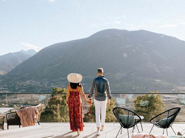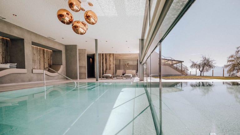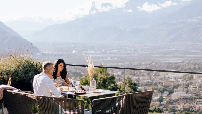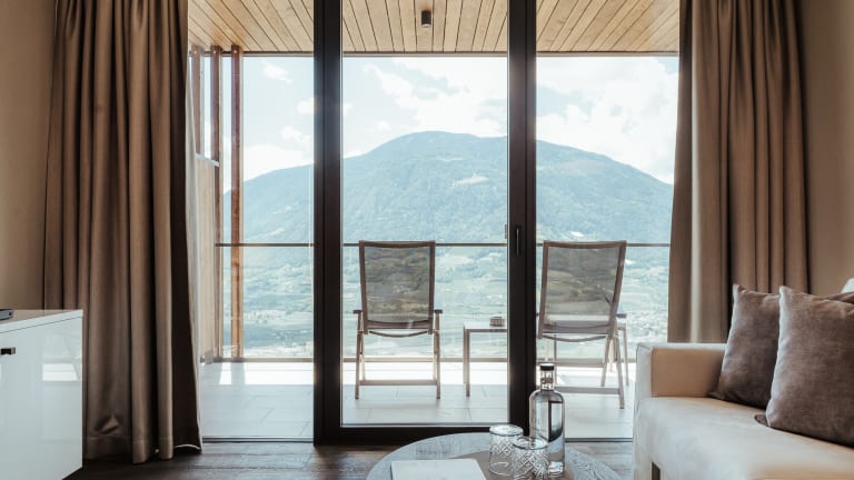 “Schau wie schön“ Das neue Panoramahotel Am Sonnenhang ****S in Dorf Tirol/ Südtirol Unglaublich, aber wahr: Mitten im Zentrum von Dorf Tirol und ganz ruhig. „Schau wie schön“ der Blick auf Meran und die Berge im Panoramahotel Am Sonnenhang. Träumen Sie in luxuriösen Suiten über den Dächern von Meran. Body, Spirit & Soul Yoga, Bodyworkouts, geführte Wanderungen und vieles mehr mit der Gastgeberfamilie sowie verschiedene Gourmethighlights und Kinderbetreuung im Sommer… das alles erwartet Sie im Sonnenhang. Zudem erhalten Sie 20% Ermäßigung auf das Greenfee Ticket in zahlreichen Golfclubs. Lifestyle & modern living for lovers & familys with amazing view. Erholsame Stunden zu zweit im Adults-Only-Wellnessbereich mit verschiedenen Saunen und Sole-Pool. Spiel und Spaß auf dem Outdoor-Spielplatz, im Kinderspieleraum oder im beheizten Indoor-Outdoor Pool mit der Familie. Freuen Sie sich auf ein genussvolles Dinner im stylishen Restaurant „The Taste“ und ausgiebiges Kuscheln in hochwertig ausgestatteten Suiten mit „Amazing View“.