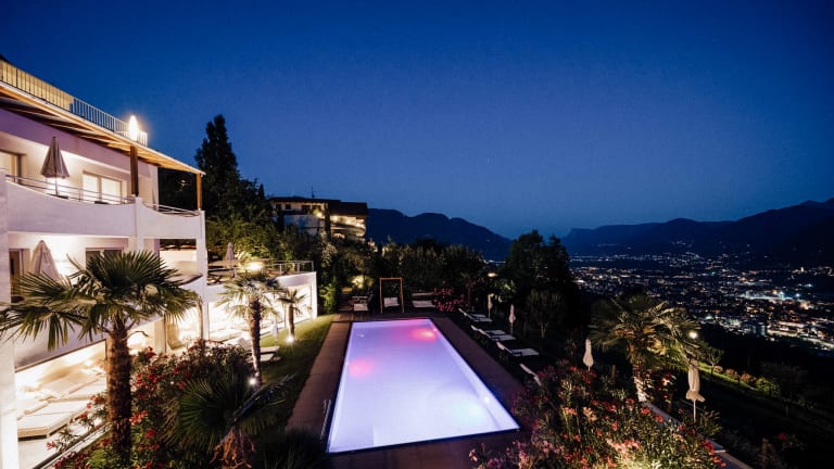 Die Toplage in Dorf Tirol! Einzigartige Ausblicke genießen und einmalige Augenblicke erleben. Den größten Luxus, den wir unseren Gästen bieten können, ist unsere Toplage. Unser Panoramahotel Am Sonnenhang an der südwestseitigen Hügelkante von Dorf Tirol. Sozusagen auf der „Butterseite“ Dorf Tirols: zentral und südseitig. Liegt absolut ruhig, sehr sonnig und mit diesem gigantischen Ausblick auf Meran und die umliegende Bergwelt.