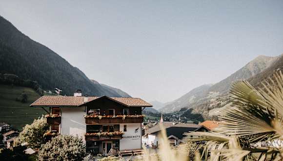 „Zu Gast in den Bergen. In unserem familiär geführten Hotel laden wir Sie ein, das Frühstück auf unserer neuen Panoramaterrasse zu genießen – mit einem herrlichen Blick in die Berge. Auch dienstags und freitags abends verwöhnen wir Sie mit saisonalen Gerichten von unserer Tageskarte. Tägliche Geheimtipps für Wanderfreudige sind natürlich enthalten. Wir achten auf unsere Umwelt. Schon seit über 20 Jahren heizen wir mit Hackschnitzeln und seit 15 Jahren nutzen wir auch die Kraft der Sonne, wodurch wir mehr als die Hälfte des verbrauchten Stroms selbst produzieren!“