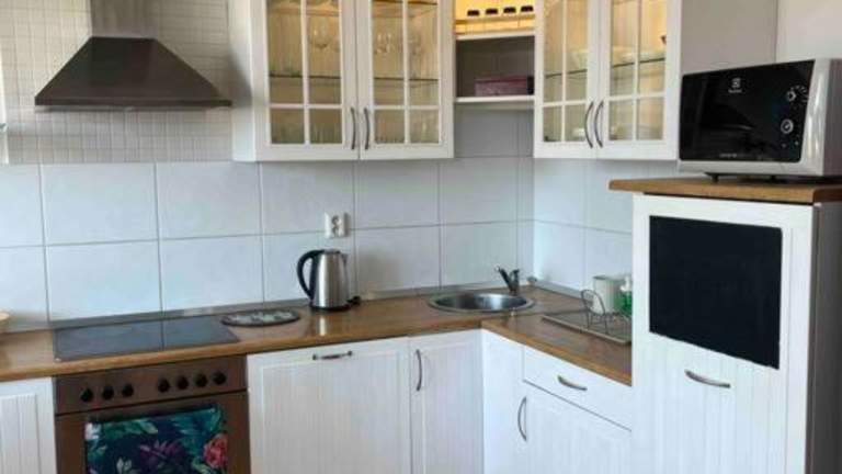 Die Ferienwohnung umfasst zwei Schlafzimmer und ein Wohnzimmer. Eine gut ausgestattete Küche mit Kühlschrank und Ofen ist ebenfalls vorhanden. Es werden Handtücher und Bettwäsche bereitgestellt.