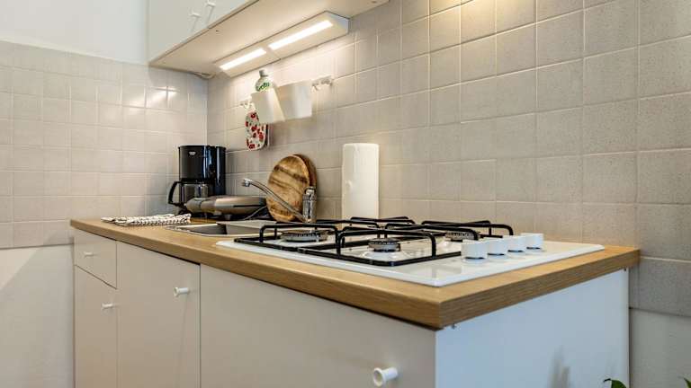Die Ferienwohnung ist mit einer Küche ausgestattet, die einen Kühlschrank, eine Mikrowelle und eine Herdplatte beinhaltet. Es sind keine speziellen Informationen zur Verpflegung vorhanden.