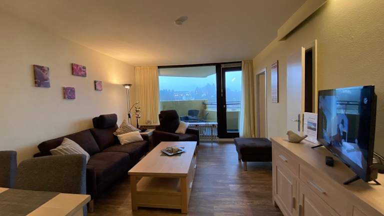 Die Ferienwohnung verfügt über zwei Schlafzimmer, ein Wohnzimmer und ein Badezimmer mit Dusche. Zur Ausstattung gehört ein Flachbild-TV sowie eine gut ausgestattete Küchenzeile mit Kühlschrank und Geschirrspüler. Ein Balkon mit Bergblick ist ebenfalls vorhanden. Handtücher und Bettwäsche sind gegen Aufpreis erhältlich. Allergikerfreundliche Zimmer sind vorhanden.