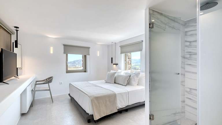 Die Panormos Bay Suites bieten luxuriöse und klimatisierte Zimmer, die mit modernen Annehmlichkeiten ausgestattet sind. Jedes Zimmer verfügt über einen Schreibtisch, eine Kaffeemaschine, einen Kühlschrank, eine Minibar, einen Safe, einen Flachbild-TV und eine Terrasse. Das private Badezimmer ist mit einem Bidet ausgestattet. Einige Zimmer verfügen sogar über eine voll ausgestattete Küche mit einem Geschirrspüler, einem Backofen und einer Mikrowelle. Die Zimmer sind komfortabel eingerichtet und bieten Ihnen alles, was Sie für einen angenehmen Aufenthalt benötigen.