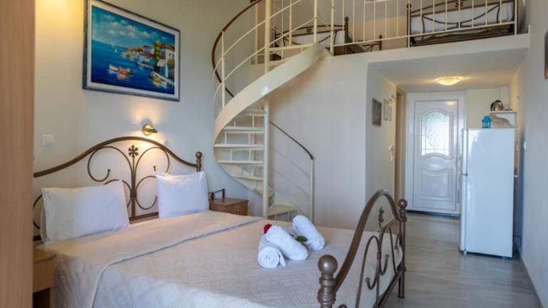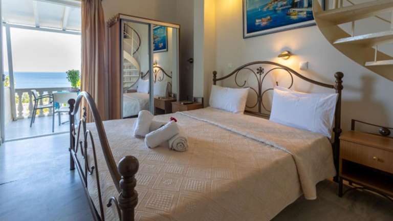 Alle Zimmer sind mit einer Klimaanlage, einem Kleiderschrank, einer Terrasse mit Meerblick und einem eigenen Badezimmer ausgestattet. Zudem verfügen die Gästezimmer über einen Flachbild-TV, einen Kühlschrank sowie Bettwäsche und Handtücher.