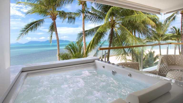 Buchen Sie das Panu Luxury Apartment für einen luxuriösen und entspannten Aufenthalt auf Koh Samui. Die Zimmer bieten atemberaubenden Meerblick, einen eigenen Pool und einen Balkon mit Whirlpool. Das Hotel bietet auch einen Concierge-Service, Autovermietung, Shuttle-Service und Kajak- und Schnellbootfahrten.