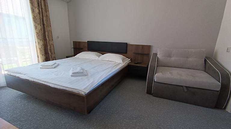 Das klimatisierte Apartment im Panzió LEMBERG verfügt über ein gemütliches Schlafzimmer, ein modernes Bad mit Badewanne oder Dusche sowie eine gut ausgestattete Küche mit Kühlschrank und Kochfeld. Im Wohnbereich finden Sie einen Flachbild-Sat-TV und kostenfreies WLAN ist im gesamten Apartment verfügbar. Handtücher und Bettwäsche werden gestellt, um Ihnen einen komfortablen Aufenthalt zu ermöglichen.