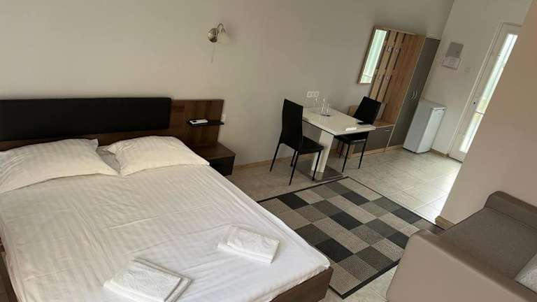 Das Panzió LEMBERG in Hajdúszoboszló ist eine gemütliche Unterkunft mit einer Terrasse, ideal gelegen in der Nähe vieler Sehenswürdigkeiten und nur wenige Kilometer vom Bahnhof entfernt. Das klimatisierte Apartment bietet Ihnen allen Komfort, den Sie für einen angenehmen Aufenthalt benötigen, einschließlich kostenfreiem WLAN und Privatparkplätzen. Mit einer gut ausgestatteten Küche und einem komfortablen Schlafzimmer werden Sie sich hier wie zu Hause fühlen.