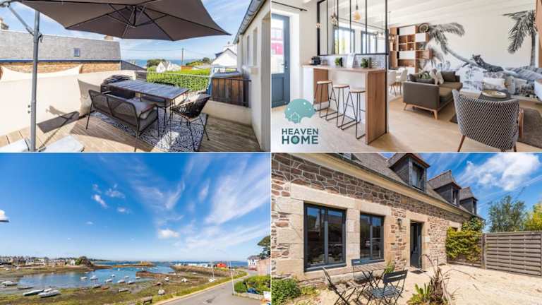 Paradis côtier - Maison vue mer à Loguivy bietet einen Garten, einen eigenen Zugang zum Strand sowie eine Terrasse und stellt Übernachtungsmöglichkeiten mit kostenlosem WLAN und Meerblick zur Verfügung.