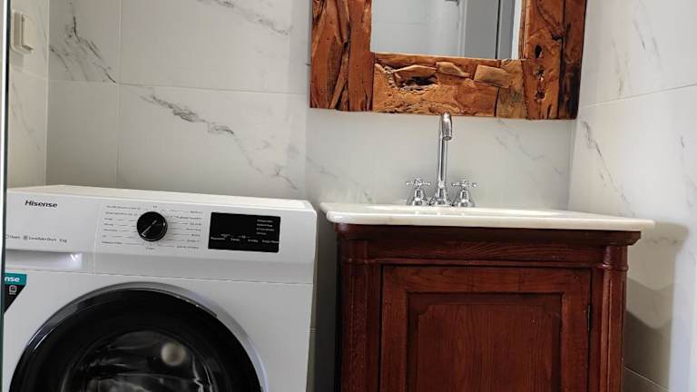 Die Ferienunterkunft verfügt über zwei Schlafzimmer, ein Wohnzimmer und eine voll ausgestattete Küche mit Kühlschrank und Kaffeemaschine. Das Badezimmer ist mit einer Dusche sowie kostenlosen Pflegeprodukten ausgestattet. Handtücher und Bettwäsche werden bereitgestellt, und es sind Klimaanlage sowie Gartenmöbel vorhanden.