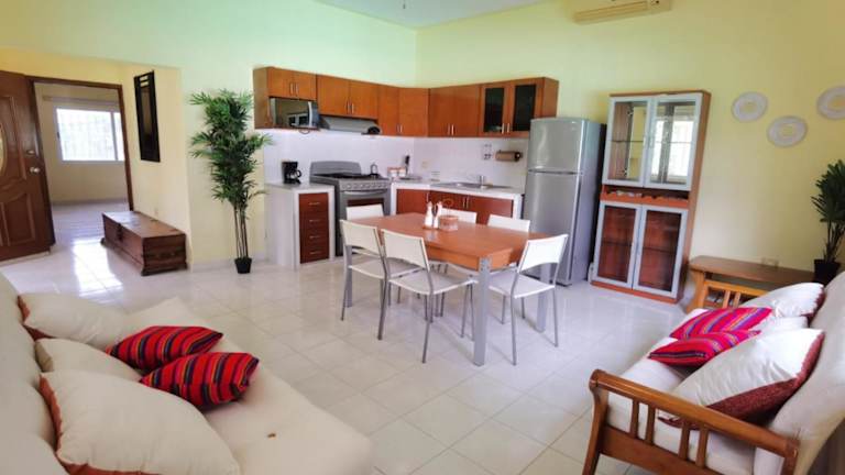 Erleben Sie einen unvergesslichen Aufenthalt in der Paradise Ranch in Cozumel. Diese Villa bietet eine idyllische Lage, einen Außenpool und kostenfreies WLAN. Genießen Sie den Komfort von 3 Schlafzimmern, 4 Badezimmern und einer voll ausgestatteten Küche. Entspannen Sie auf der Terrasse mit Blick auf den Pool und lassen Sie sich von dem erstklassigen Service des freundlichen Personals verwöhnen. Die Nähe zum Strand und die Möglichkeit, Fahrräder und Autos zu mieten, machen diese Unterkunft zu einem perfekten Ausgangspunkt, um die Umgebung zu erkunden.