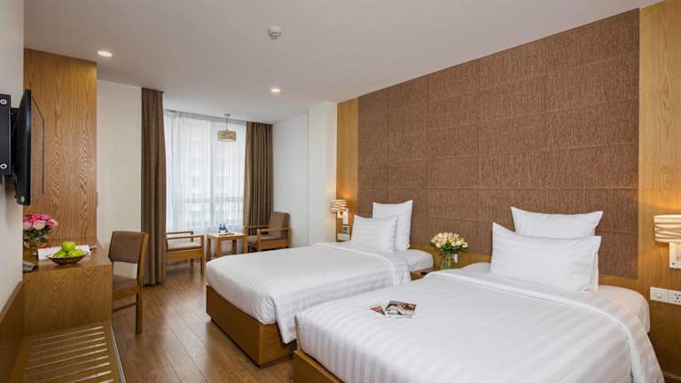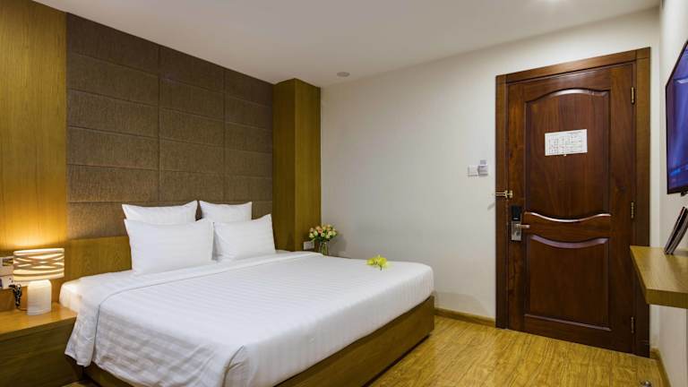 Das Restaurant des Hotels verwöhnt Sie mit einer Auswahl an köstlichen vietnamesischen und westlichen Gerichten. Genießen Sie Ihr Frühstück, Mittag- oder Abendessen in angenehmer Atmosphäre. An der Bar können Sie Bier, Wein und eine Auswahl weiterer Getränke genießen. Wenn Sie Lust auf einen Kaffee haben, finden Sie in nur 5 Gehminuten Entfernung ein Starbucks-Café sowie Filialen bekannter Fast-Food-Ketten.