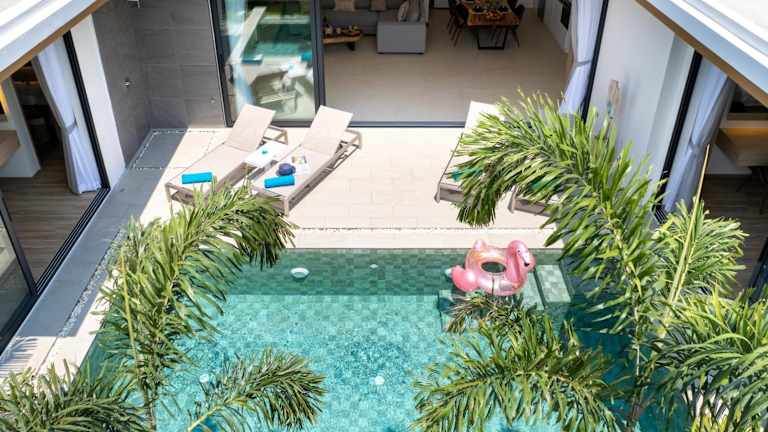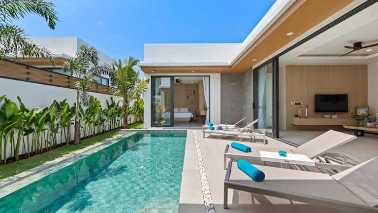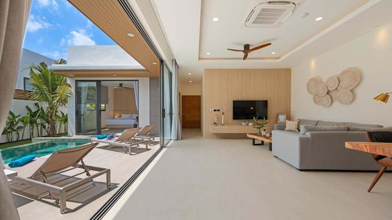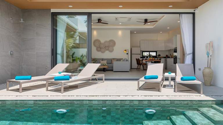 Die Villa verfügt über 3 Schlafzimmer und 3 Badezimmer. Zur weiteren Ausstattung gehören Bettwäsche, Handtücher, ein Flachbild-TV, ein Essbereich, eine voll ausgestattete Küche sowie eine Terrasse mit Blick auf den Pool.