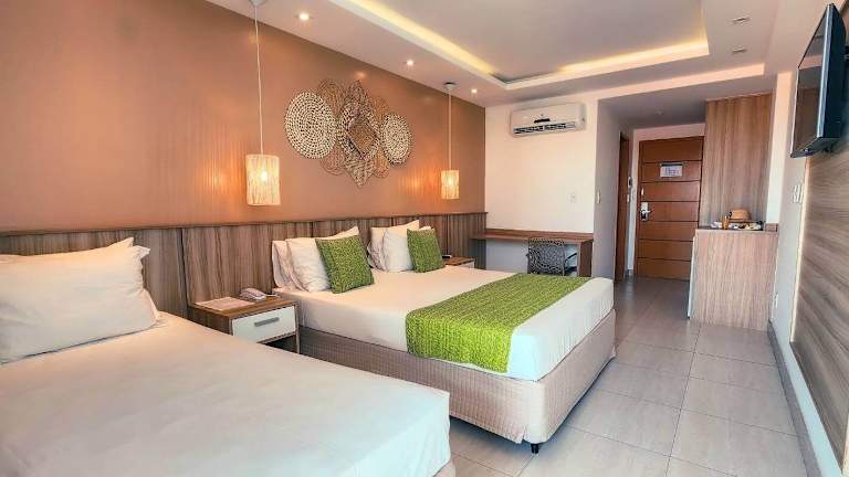 Die Zimmer sind klimatisiert und modern eingerichtet. Sie bieten Annehmlichkeiten wie einen Flachbildfernseher, eine Minibar und kostenloses WLAN. Einige Zimmer verfügen über einen Balkon mit Meerblick. Die Badezimmer sind mit einer Badewanne sowie einer Dusche ausgestattet und bieten einen Haartrockner sowie Bademäntel. Es stehen Nichtraucherzimmer zur Verfügung.