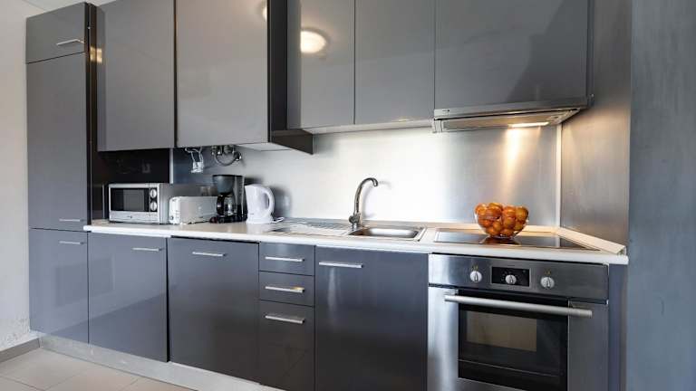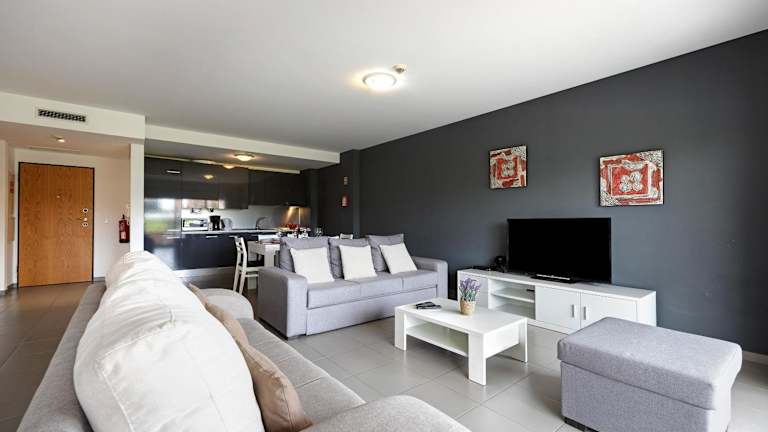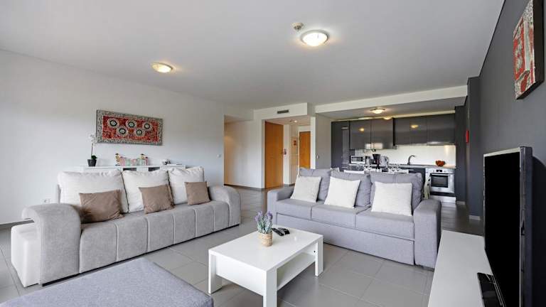 Die Ferienwohnung umfasst zwei Schlafzimmer und ein Wohnzimmer. Die voll ausgestattete Küche ist mit einem Kühlschrank und einem Wasserkocher ausgestattet. Des Weiteren sind zwei Badezimmer mit Dusche und kostenlosen Pflegeprodukten vorhanden. Handtücher und Bettwäsche werden bereitgestellt. Die Unterkunft ist klimatisiert und bietet Gartenmöbel im Außenbereich.