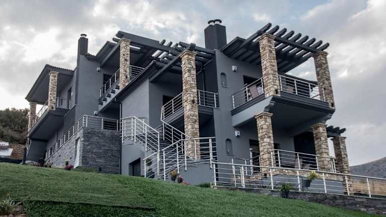 Die Villen befinden sich in einer ruhigen Umgebung und bieten eine herrliche Aussicht auf die Stadt und das Meer. Die Umgebung ist ideal zum Wandern, Angeln und Kanufahren. Der See Dystos und die Kirche von Agios Charalabos Lefkon sind nur wenige Kilometer entfernt.