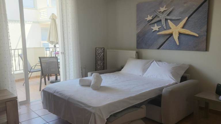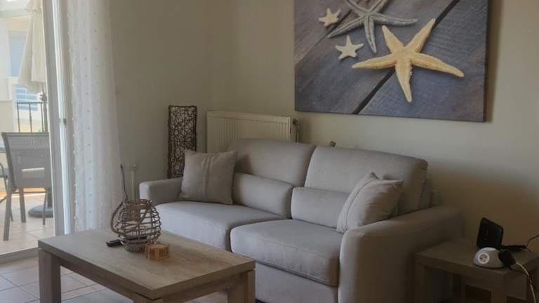 Paralio Place bietet Meerblick mit einer Terrasse und einem Balkon in einer Ferienwohnung. Die Unterkunft ist klimatisiert und bietet kostenfreies WLAN in allen Bereichen.