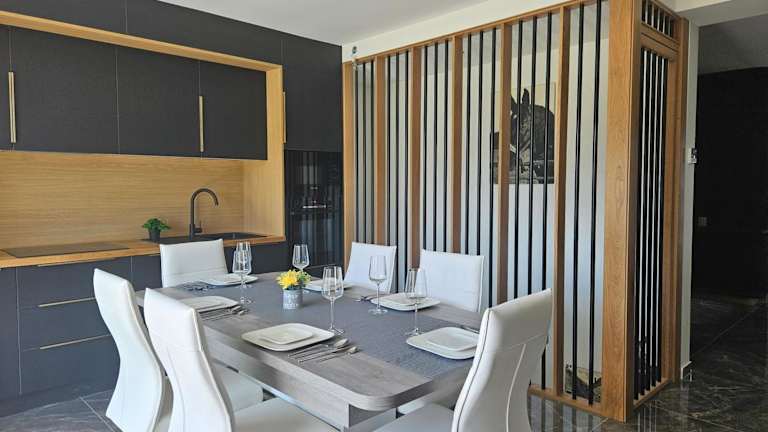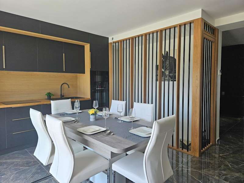 Die Villa verfügt über 2 Schlafzimmer, ein Wohnzimmer und eine voll ausgestattete Küche, die einen Kühlschrank und eine Kaffeemaschine umfasst. Zu den Annehmlichkeiten zählen 2 Badezimmer mit Dusche und kostenlosen Pflegeprodukten, sowie die Bereitstellung von Handtüchern und Bettwäsche. Die Villa ist klimatisiert und hat Nichtraucherzimmer.