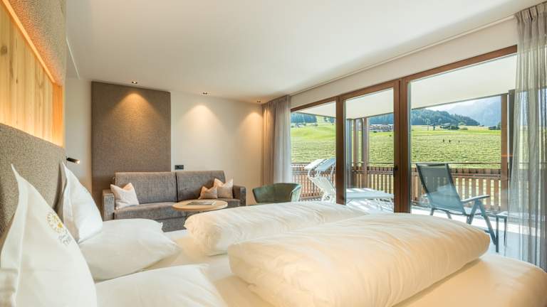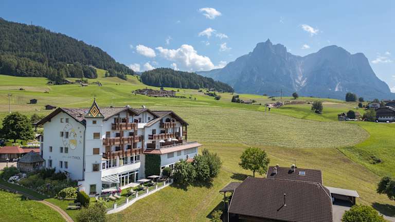 5 Gehminuten vom Zentrum, am Sonnenhang, inmitten von Wiesen mit einmaligem Ausblick auf Kastelruth und die umliegenden Berge. Skipisten, Langlaufloipen und Eislaufplatz in unmittelbarer Nähe des Hauses. Familiäre, kinderfreundlich Atmosphäre, gediegene neue Einrichtung im Südtiroler Stil, anspruchsvolle Räumlichkeiten für Genuss, Spiel, Spaß, Relax und Erholung. Gepflegte internationale und bürgerliche Küche. Auch Zimmer mit Frühstück möglich. Im Preis inbegriffen sind außerdem Hotelgarage, Hallenbad, Fitnessraum, Spielsaal, Kinderstube sowie Sauna und Dampfbad und Infrarotkabine.