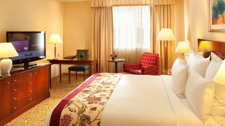 Das Paris Marriott Charles de Gaulle Airport Hotel bietet eleganten Komfort und freundlichen Service nur 2 km vom Flughafen Paris Charles de Gaulle entfernt. Mit klimatisierten Zimmern, kostenfreiem WLAN und einem kostenlosen Flughafenshuttle ist dieses Hotel ideal für Reisende, die eine bequeme und komfortable Unterkunft suchen. Genießen Sie das Frühstück, das täglich serviert wird, und nutzen Sie die Annehmlichkeiten wie das Fitnesscenter, die Sauna und die 24 voll ausgestatteten Tagungsräume.
